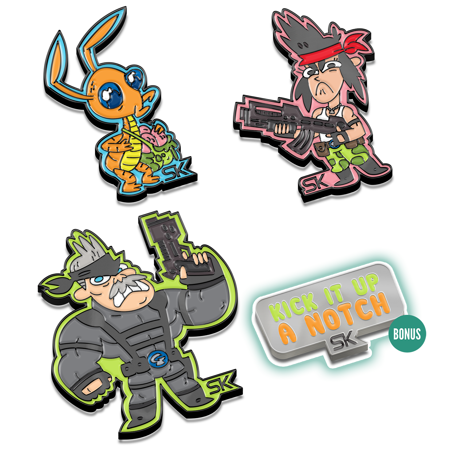 The StarKid Pindemonium Pack 1 features your favorite Starship Rangers including Bug, Taz, and Commander Up from “Starship." Get the complete set to get unlock the Kick It Up A Notch bonus pin!